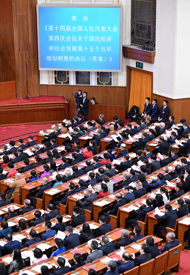 2026年3月12日,第十四届全国人民代表大会第四次会议在北京人民大会堂举行闭幕会。(新华社记者 张领/摄)