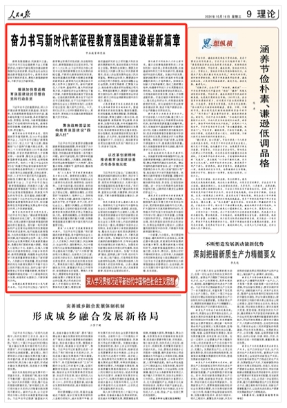 一分部署,九分落实。我们要坚持打基础、建机制和利长远相结合,统筹近期中期远期,抓紧谋划布局急需抓住的重大事项、急需突破的重大领域和环节,将教育强国蓝图转化为具体施工图、任务书、责任状。坚持以钉钉子精神抓好落实,以百年树人的战略眼光和百舸争流的奋斗姿态勇毅前行,把习近平总书记重要讲话精神转化为教育强国建设的澎湃动力、生动实践,转化为支撑引领中国式现代化的有力举措、务实成效。(本文刊发于《人民日报》2024年10月16日第09版)