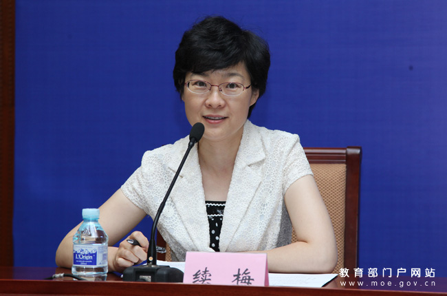 教育部新闻发言人续梅主持发布会。(中国教育报记者 张劲松摄)